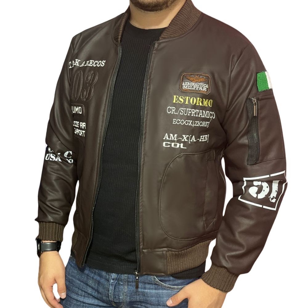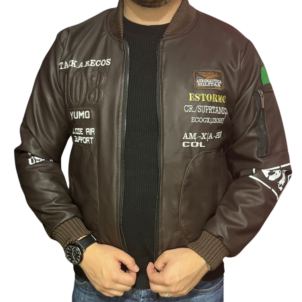 Fabricada con Cuerotex, un material de alta calidad conocido por su durabilidad y elegancia, esta chaqueta es una expresión de refinamiento y buen gusto. El frente de la chaqueta está adornado con estampados bordados, añadiendo un toque de distinción y personalidad única.