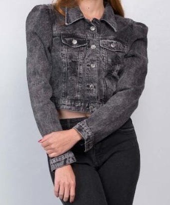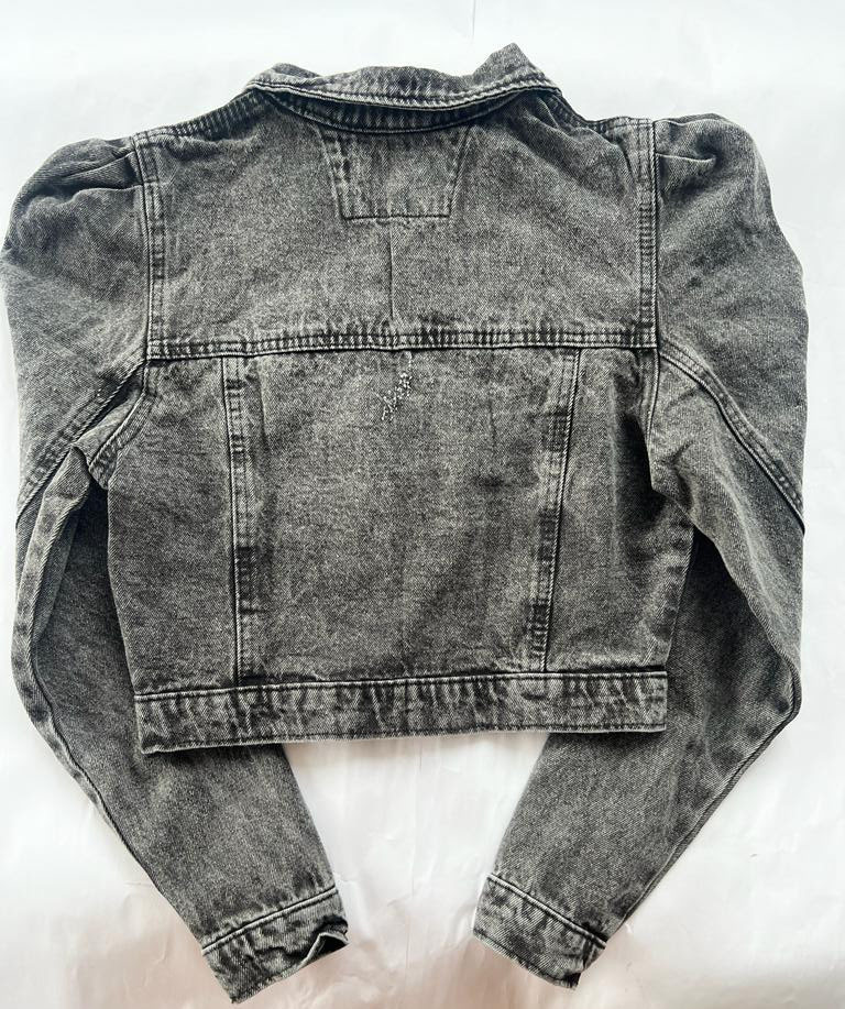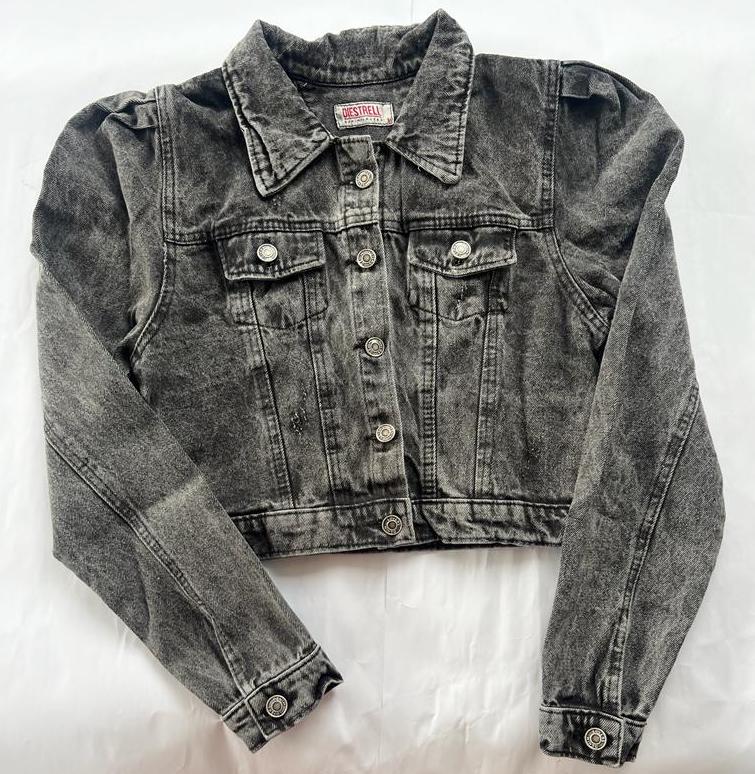 Chaqueta Manga Fruncida de Jean tipo Torero, Pretina Ajustable. 100% algodón. Color gris, acabado Fross. Envíos gratis y pago contra entrega en Colombia. 🛍️