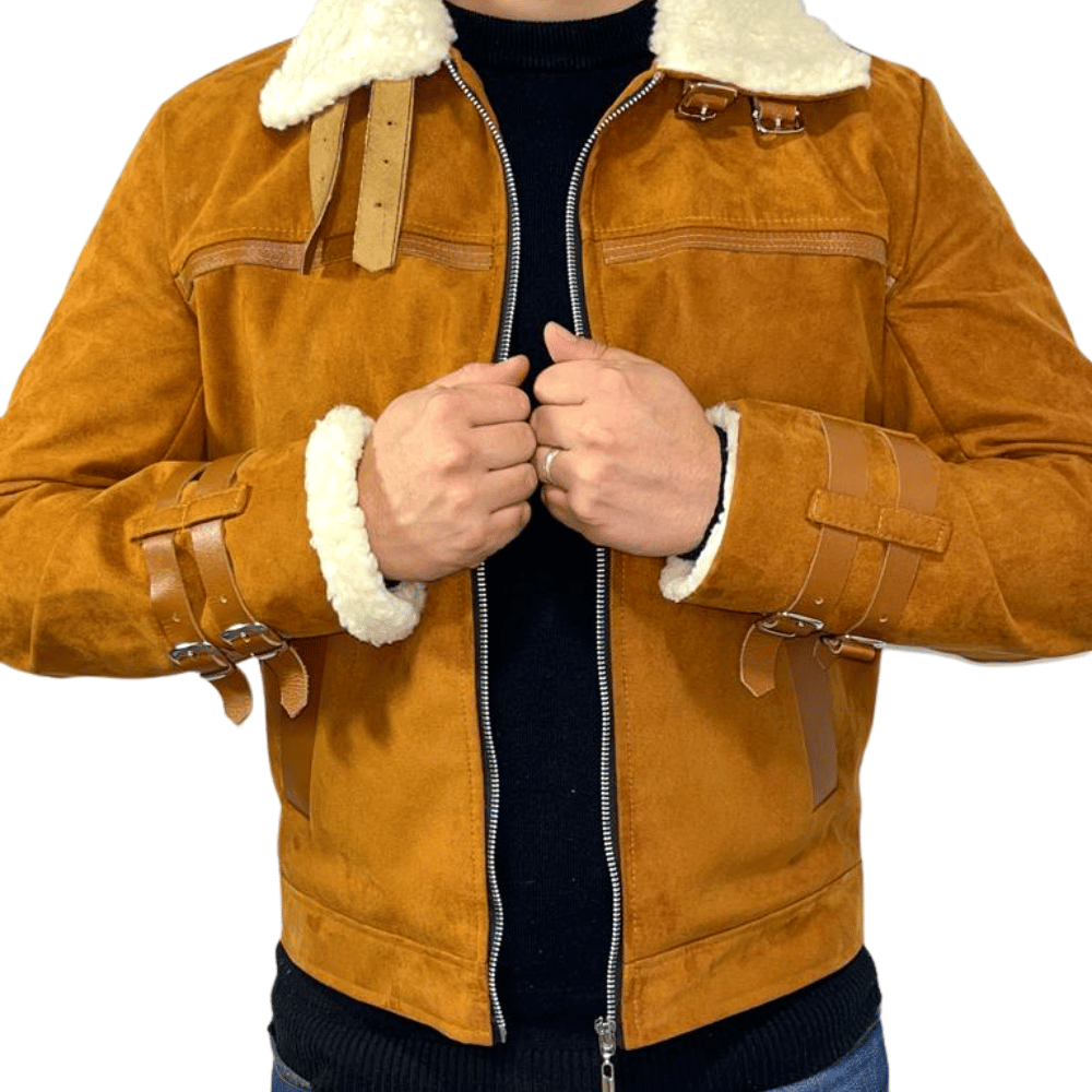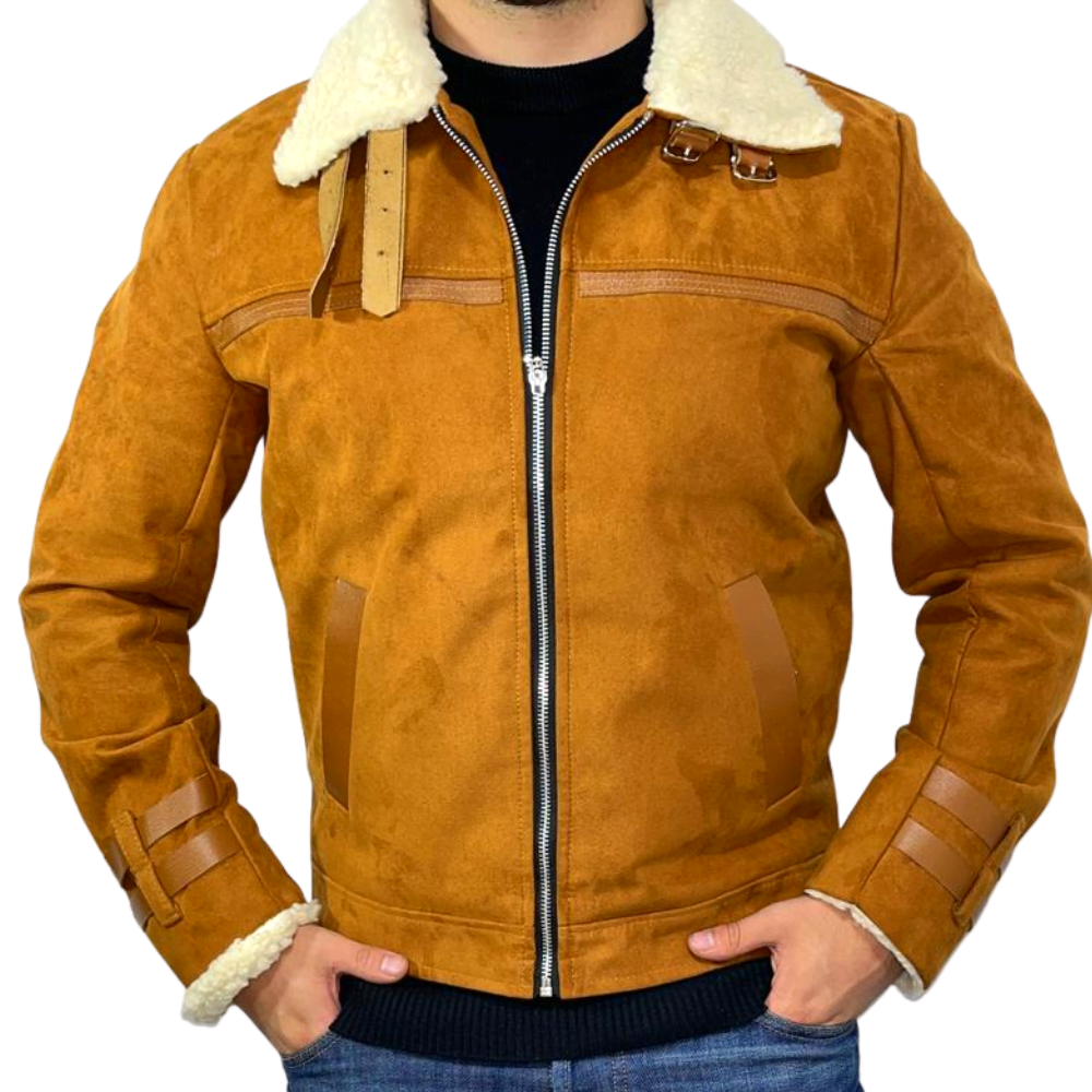 La Chaqueta para Hombre Miel está confeccionada en suave gamuza con un tallaje slim que resalta tu figura. ¡Marca tendencia con estilo! 👔💼